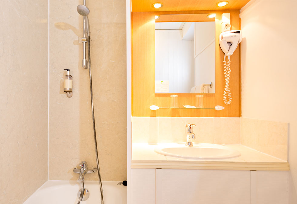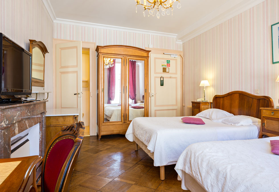 Chambre Triple avec un lit double et un lit d’une personne, parfaite pour une petite famille.