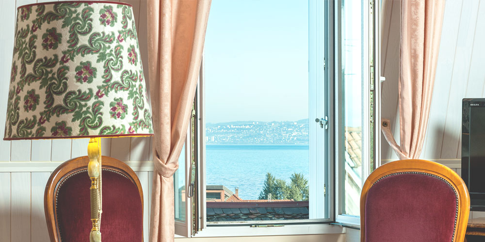Nos chambres spacieuses et soigneusement meublées style « Belle Époque » évoquent le passé d’Evian-les-Bains dans toute sa splendeur.