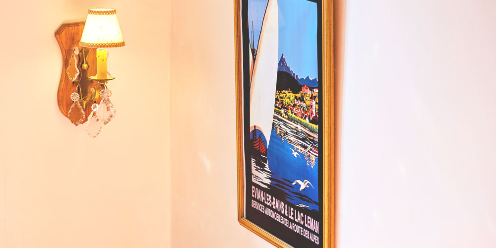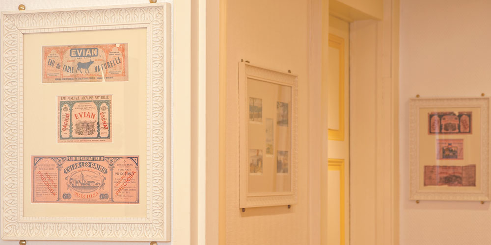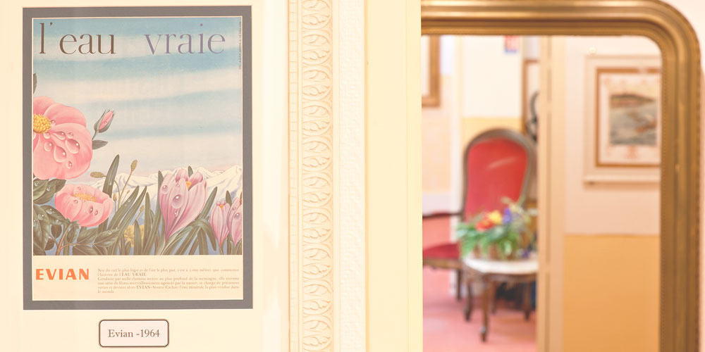 Nous vous invitons à faire un petit tour sur les paliers et couloirs pour une petite leçon sur l’histoire d’Evian à travers notre collection d’affiches, cartes postales, etc…